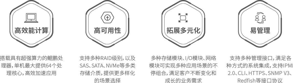 Ebpay KunTai R721高密服务器是神州数码基于鲲鹏基础硬件推出的新一代高密度计算设备。其具备高效能计算、安全可靠与开放生态优势。